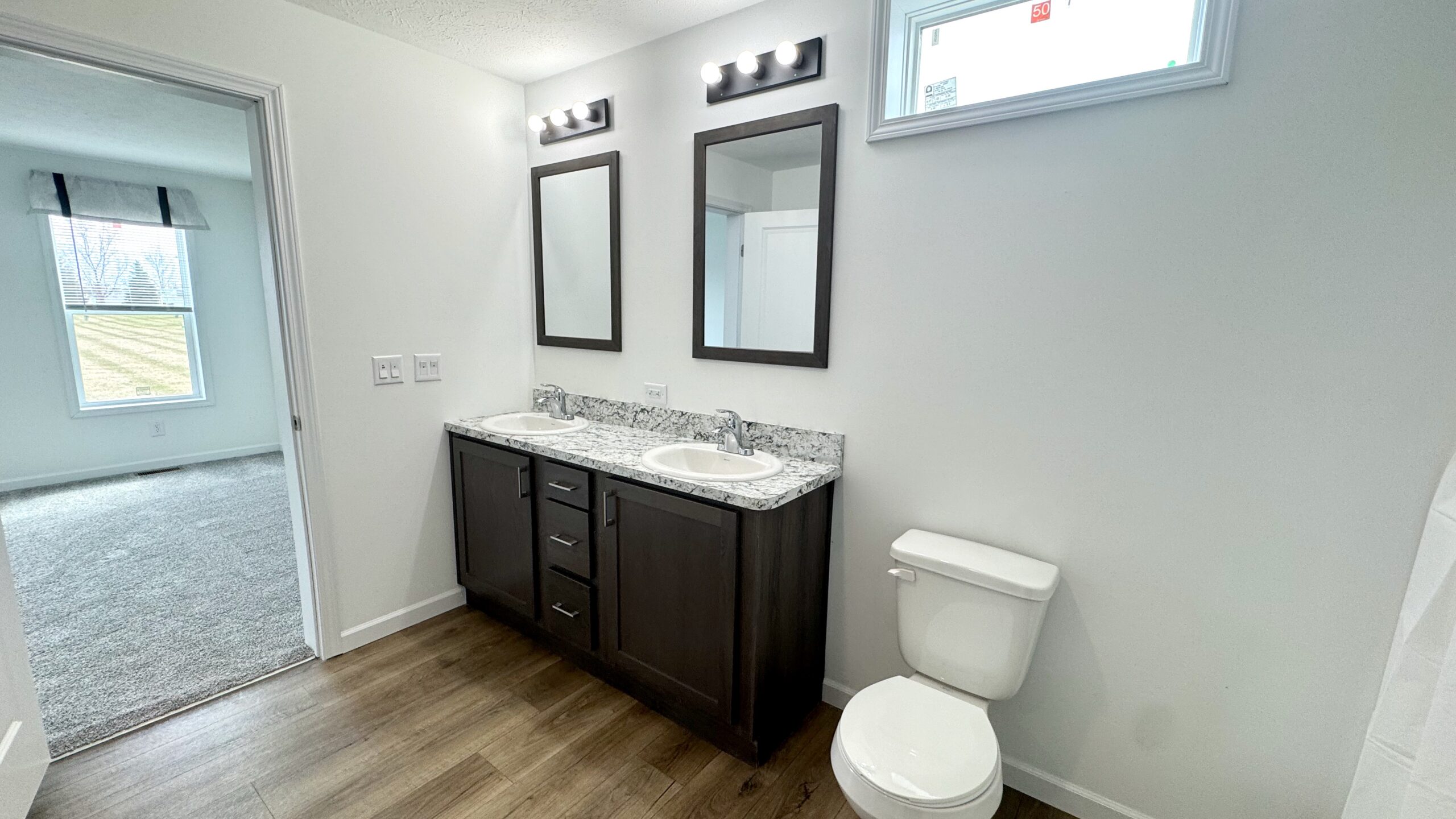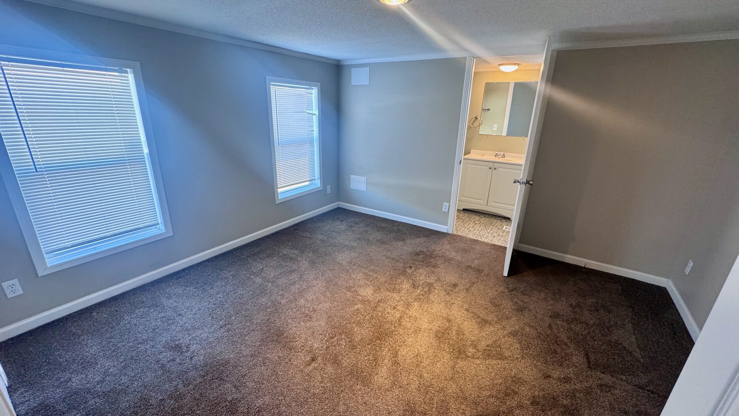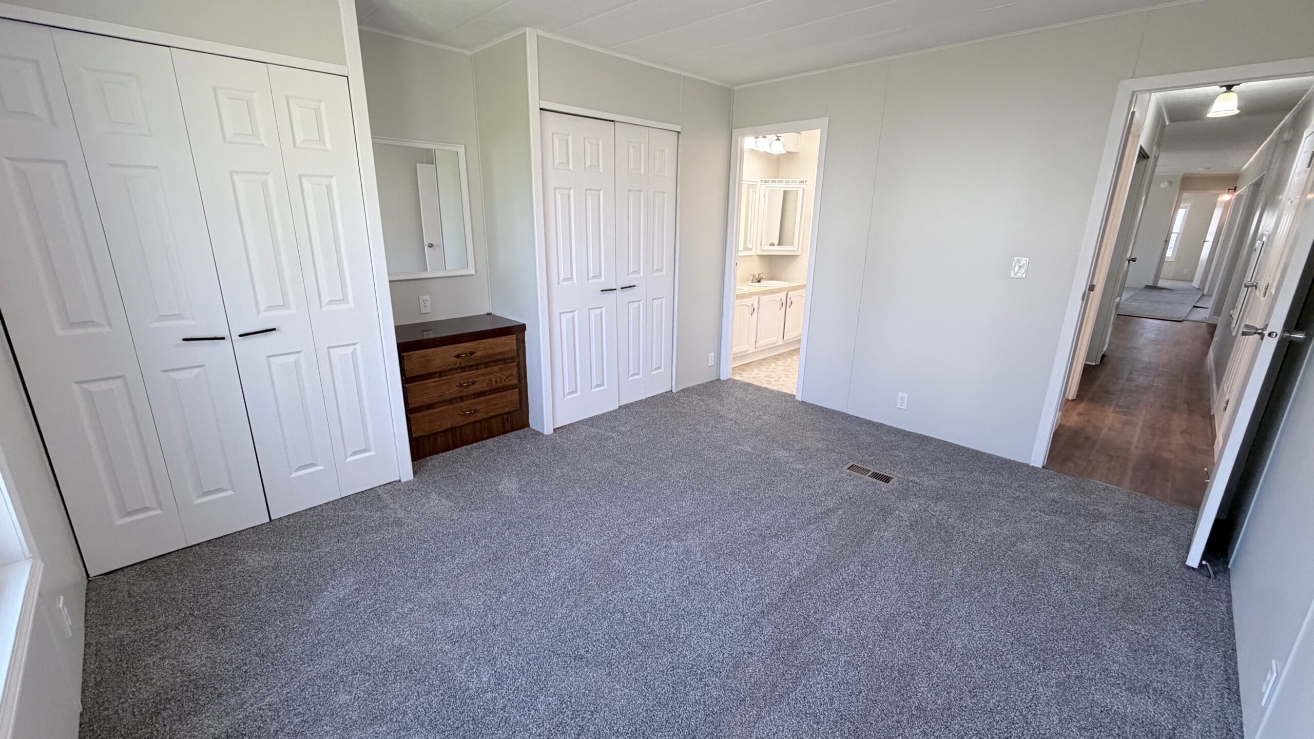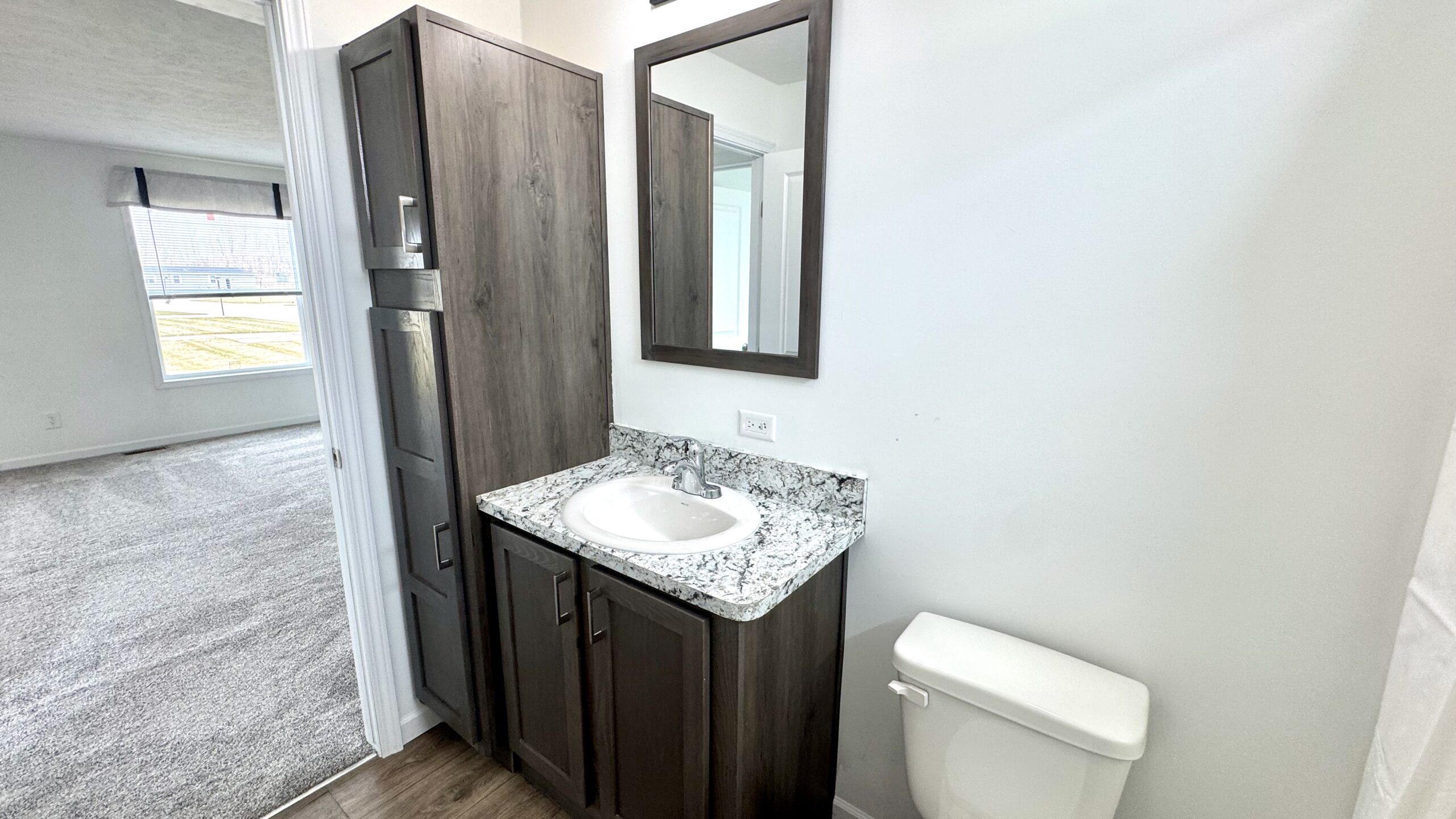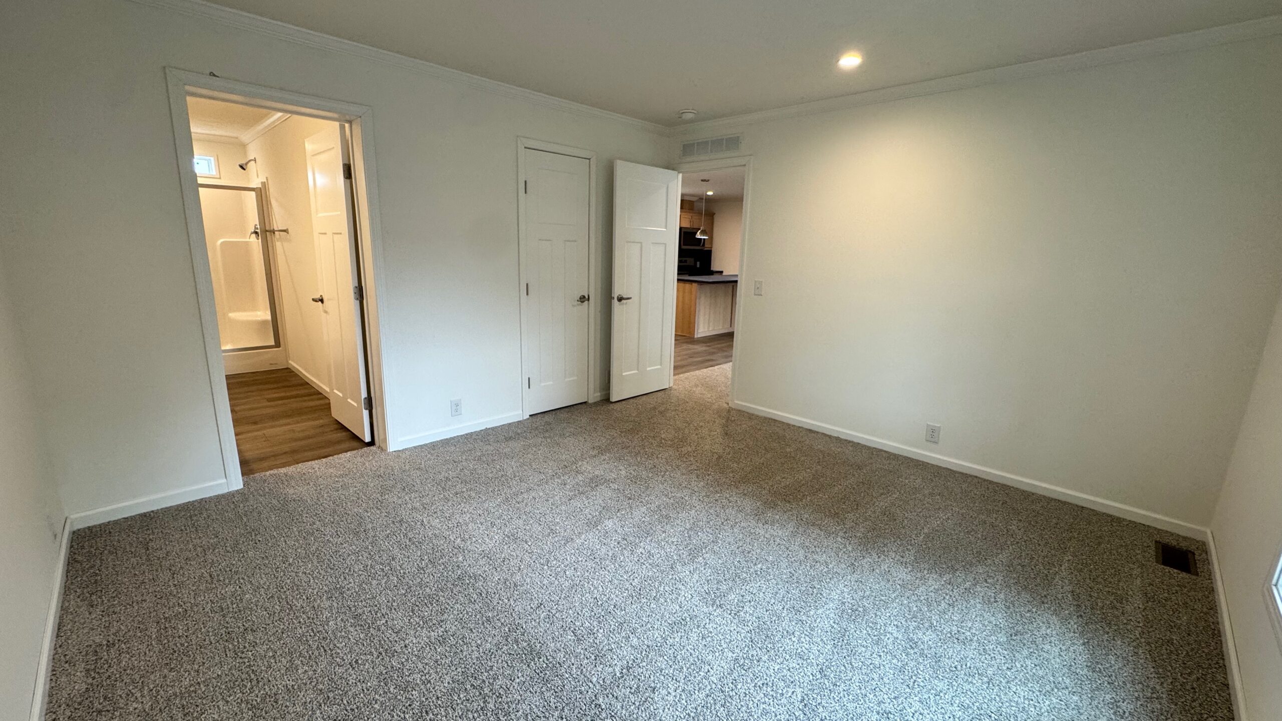 A stylish combination of plush carpet and durable vinyl flooring creates the perfect balance of warmth and low-maintenance convenience throughout the home. The spacious primary suite features a walk-in closet and a private en-suite bath.