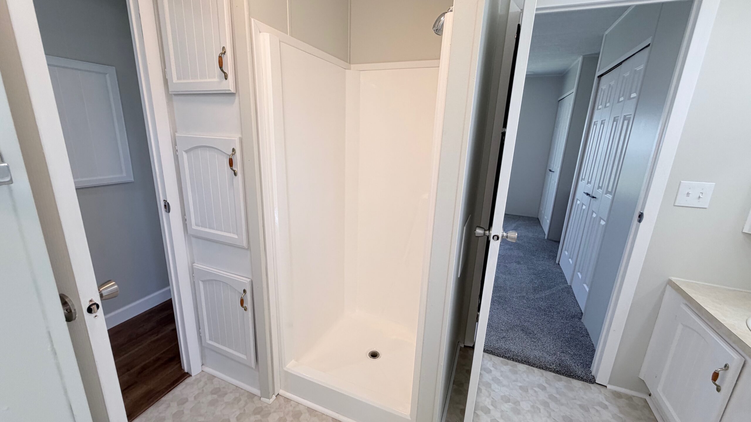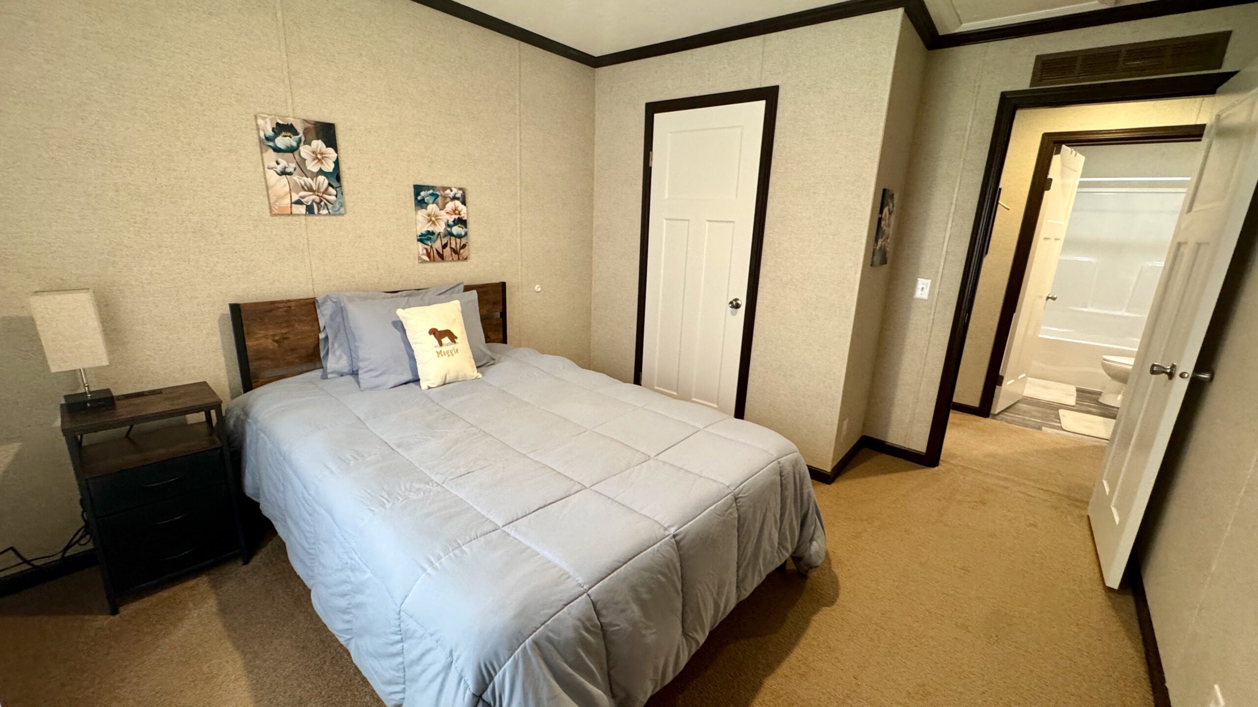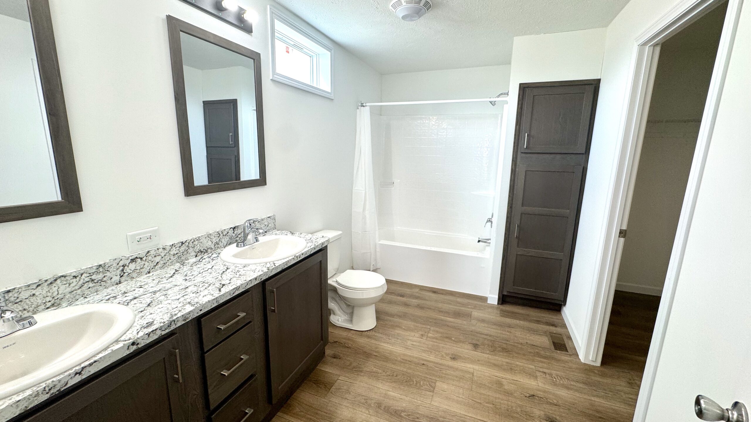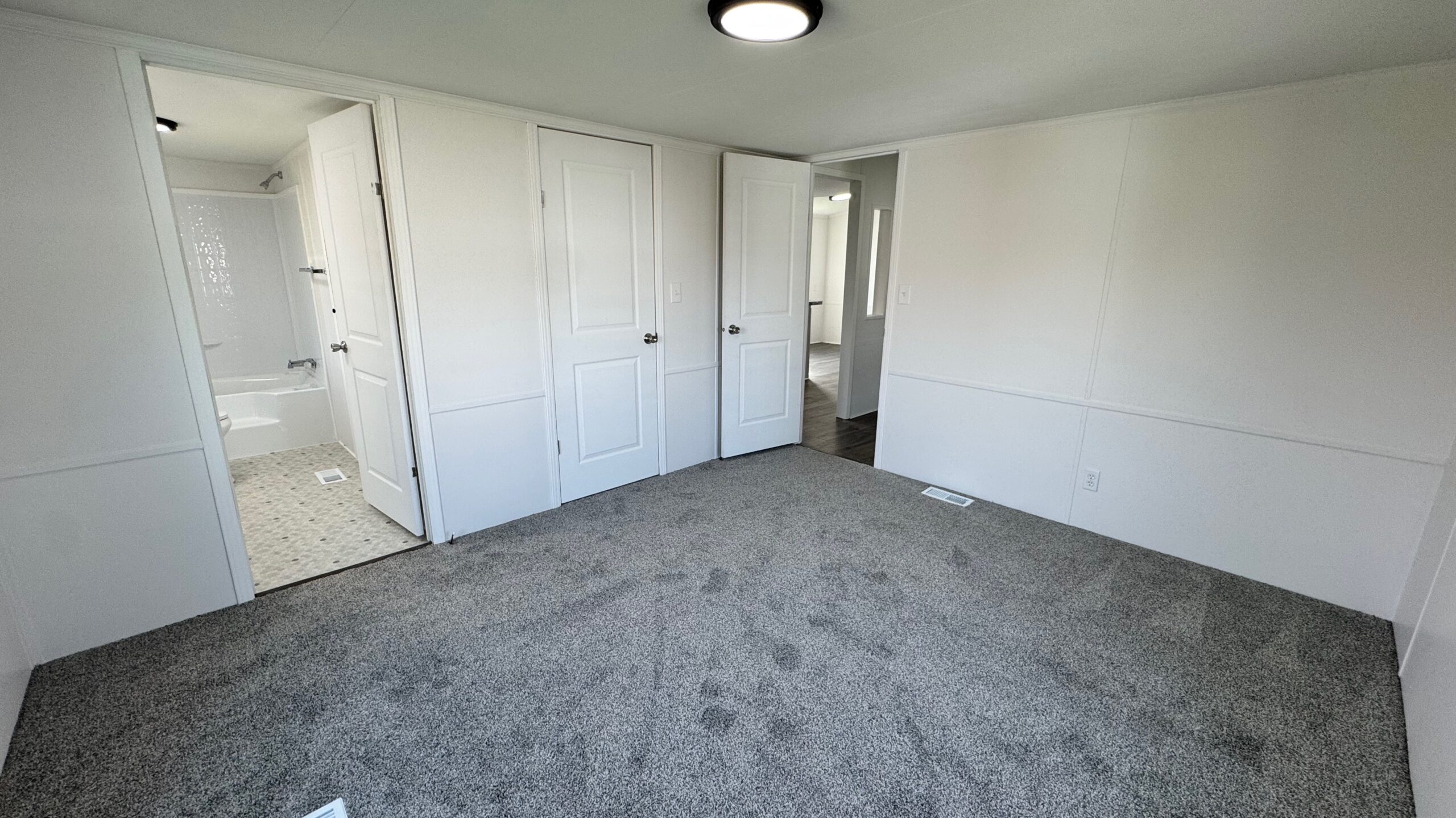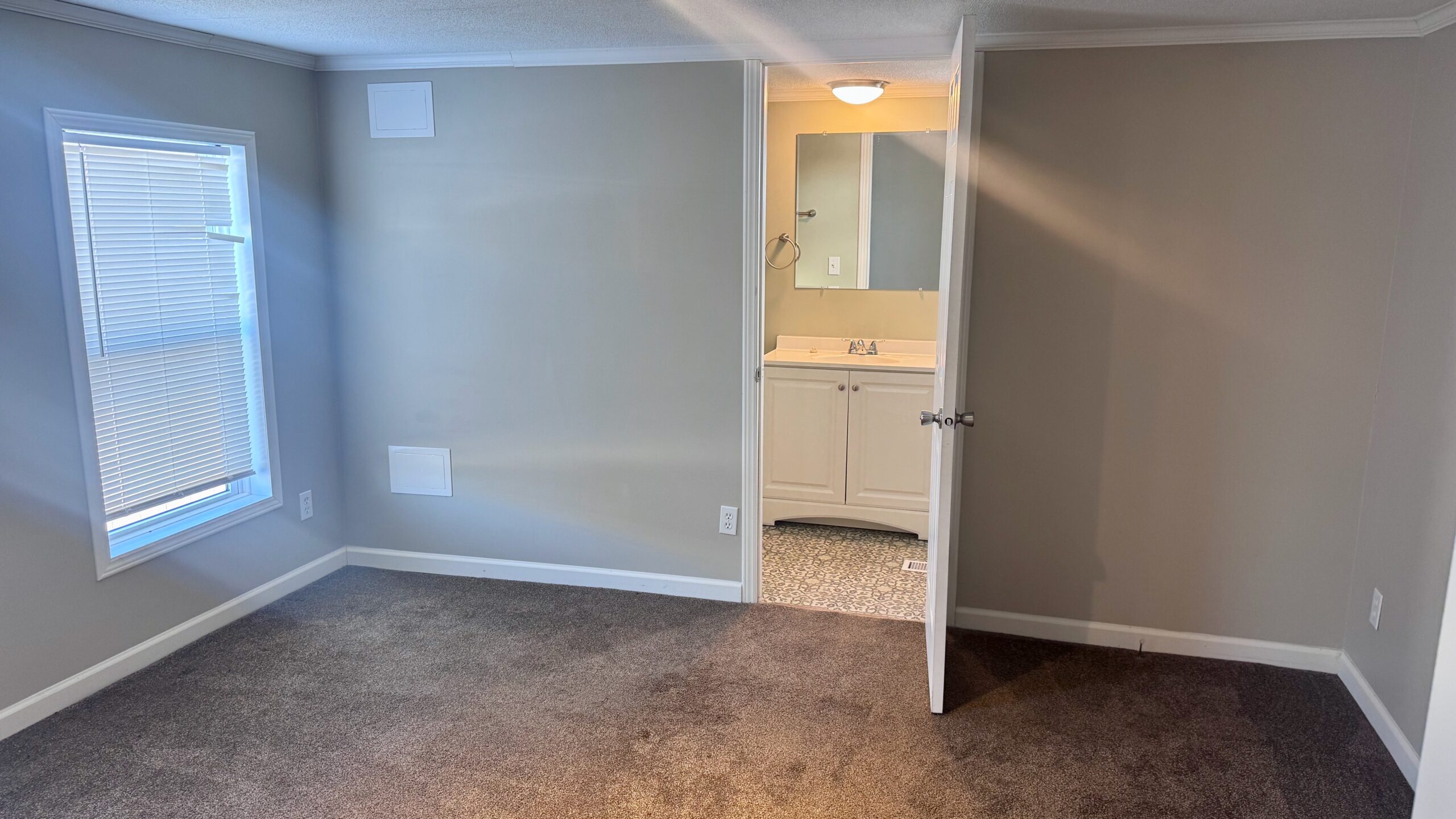 A stylish combination of plush carpet and durable vinyl flooring creates the perfect balance of warmth and low-maintenance convenience throughout the home. The spacious primary suite features a walk-in closet and a private en-suite bath.