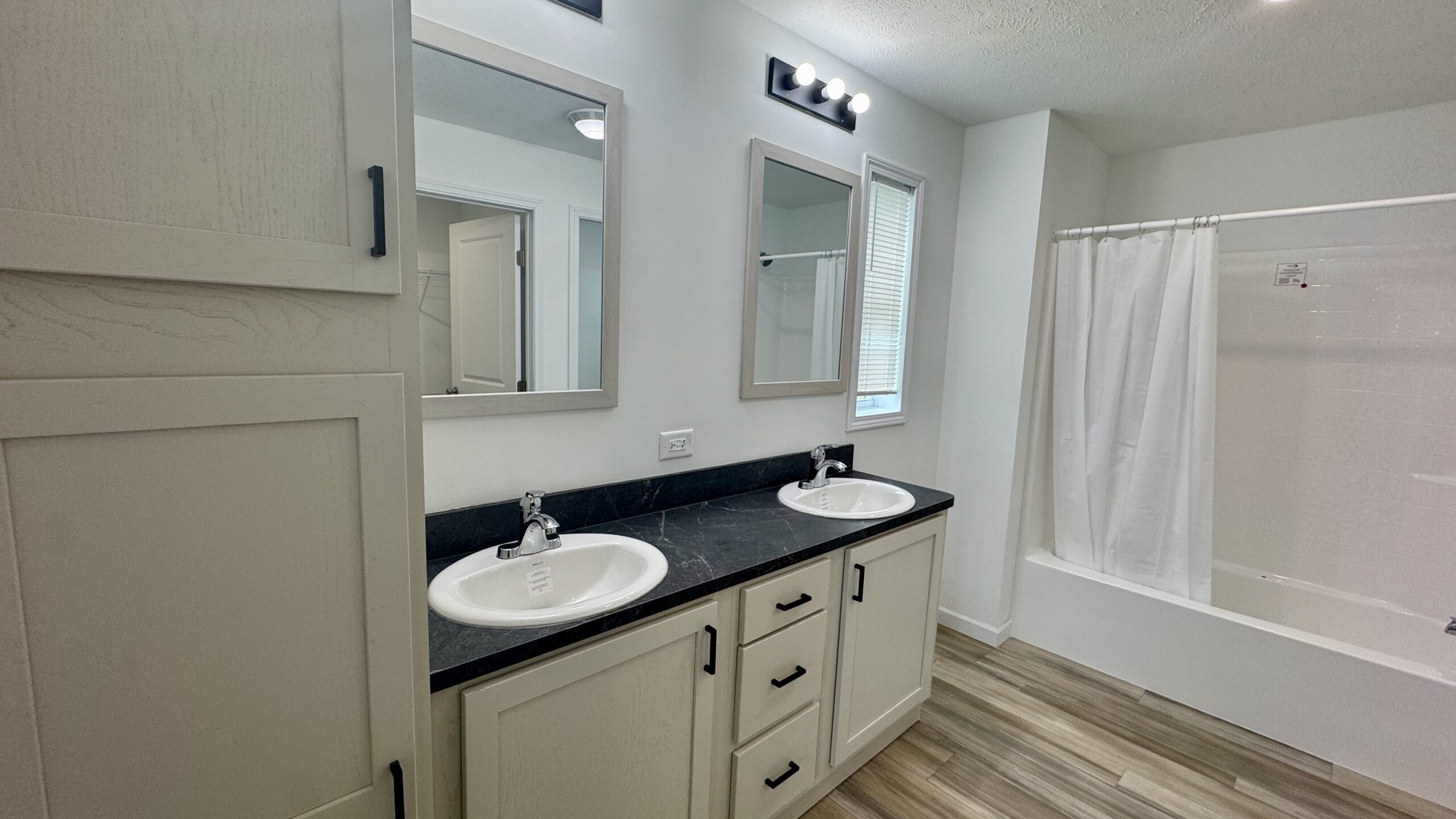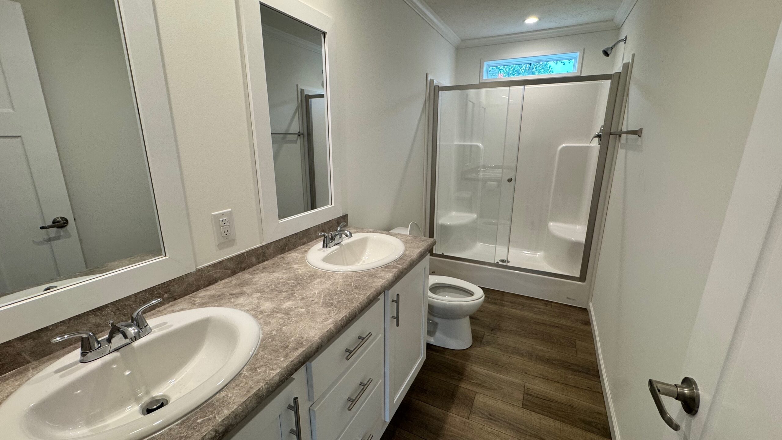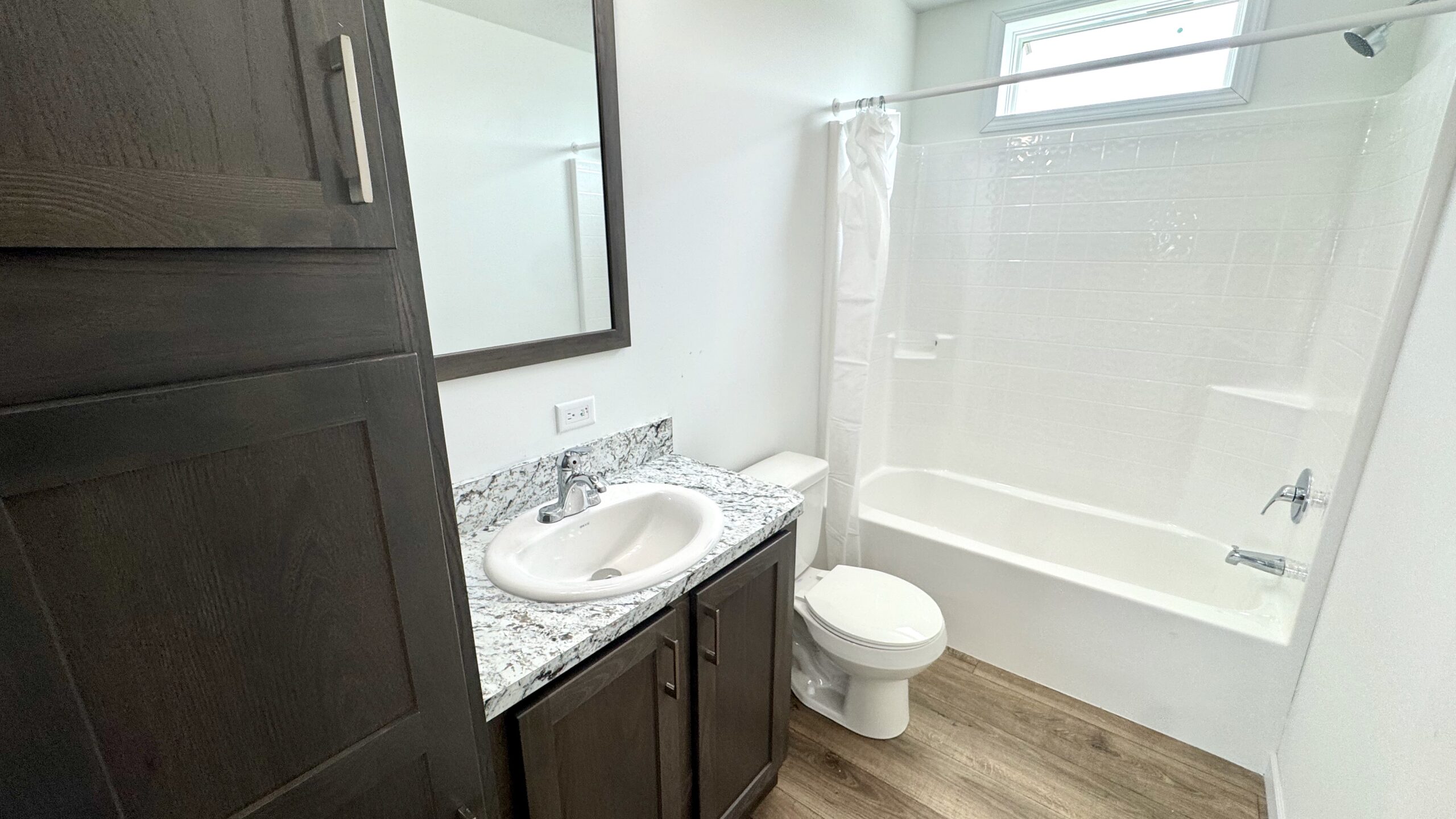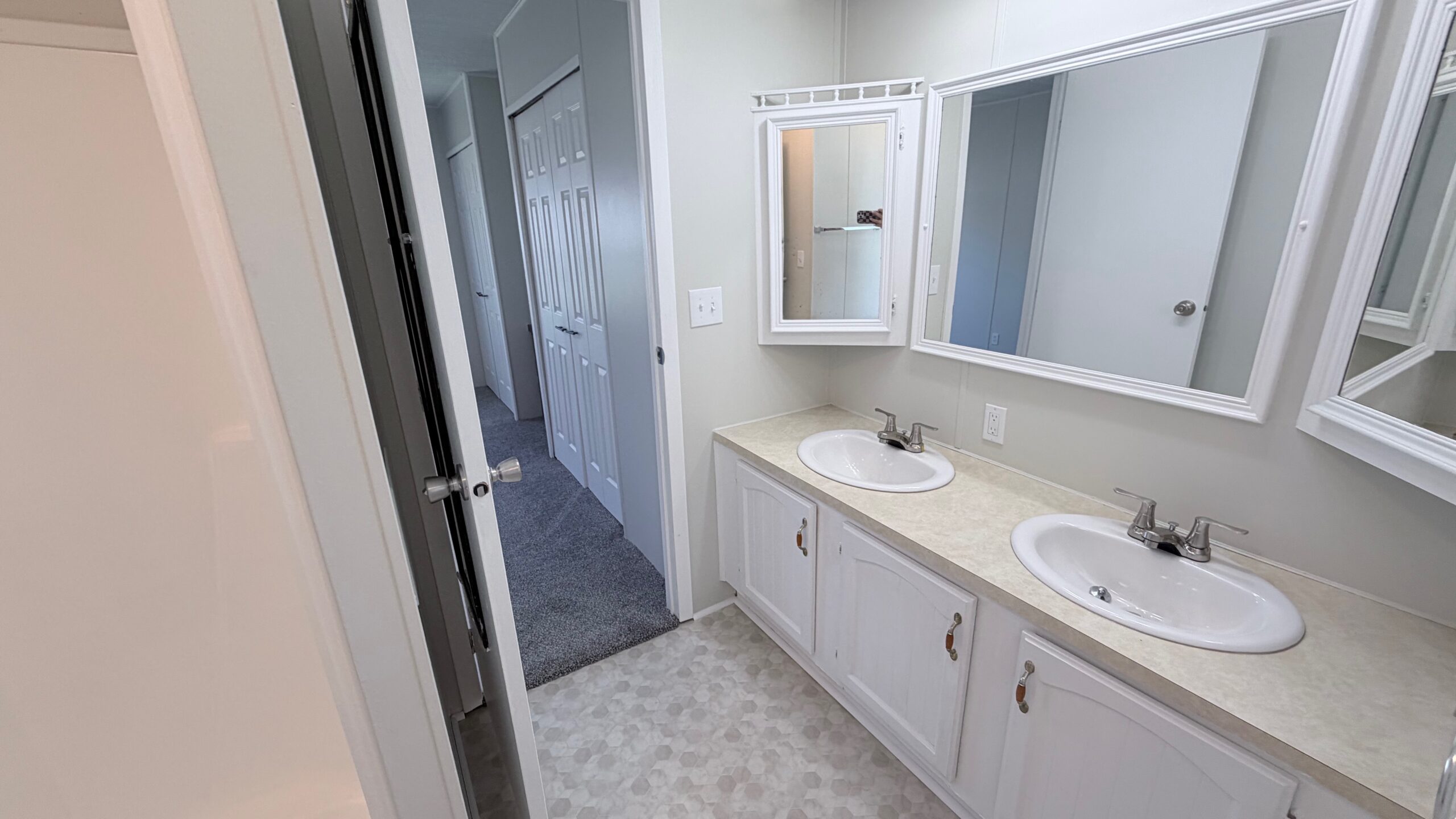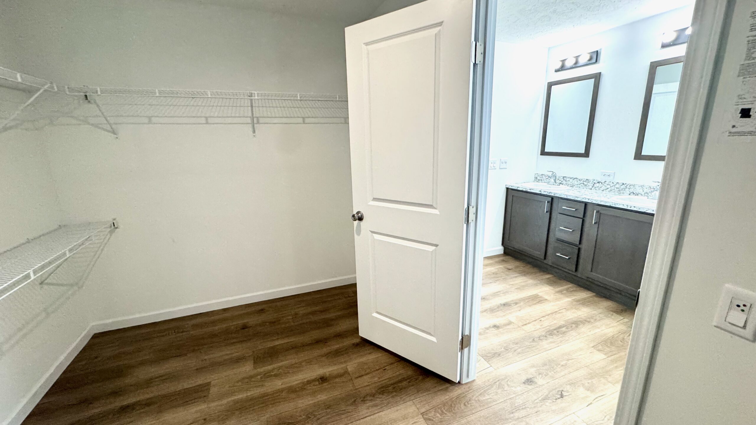 A stylish combination of plush carpet and durable vinyl flooring creates the perfect balance of warmth and low-maintenance convenience throughout the home. The spacious primary suite features a walk-in closet and a private en-suite bath.