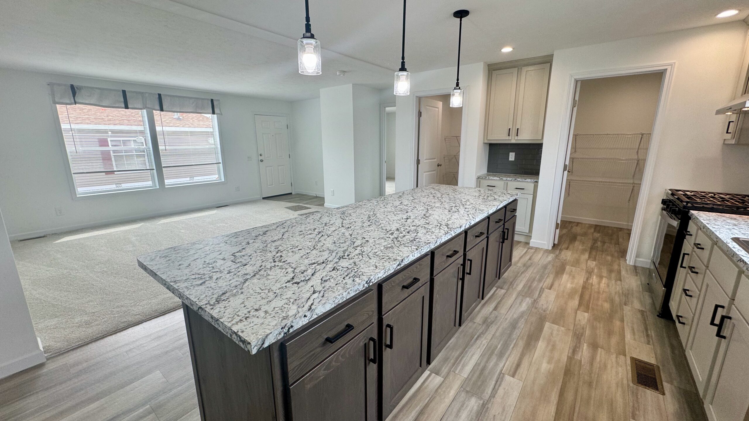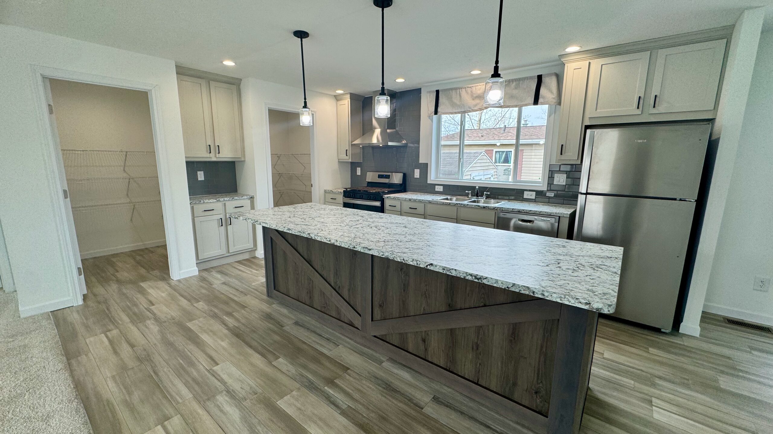 At the heart of the home is a show-stopping kitchen that truly impresses—featuring sleek stainless steel appliances, a stainless steel range hood, a massive walk-in pantry, and an oversized island perfect for meal prep, casual dining, or gathering with friends and family.