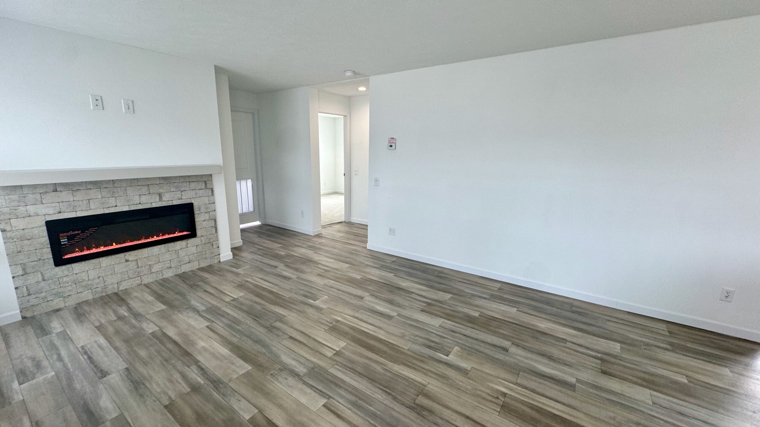This home has been completely remodeled, offering a fresh, modern feel with cozy charm throughout. The inviting front kitchen, living, and dining layout creates an open, welcoming space perfect for everyday living. The living room features a stylish electric fireplace, adding warmth and character to the heart of the home.