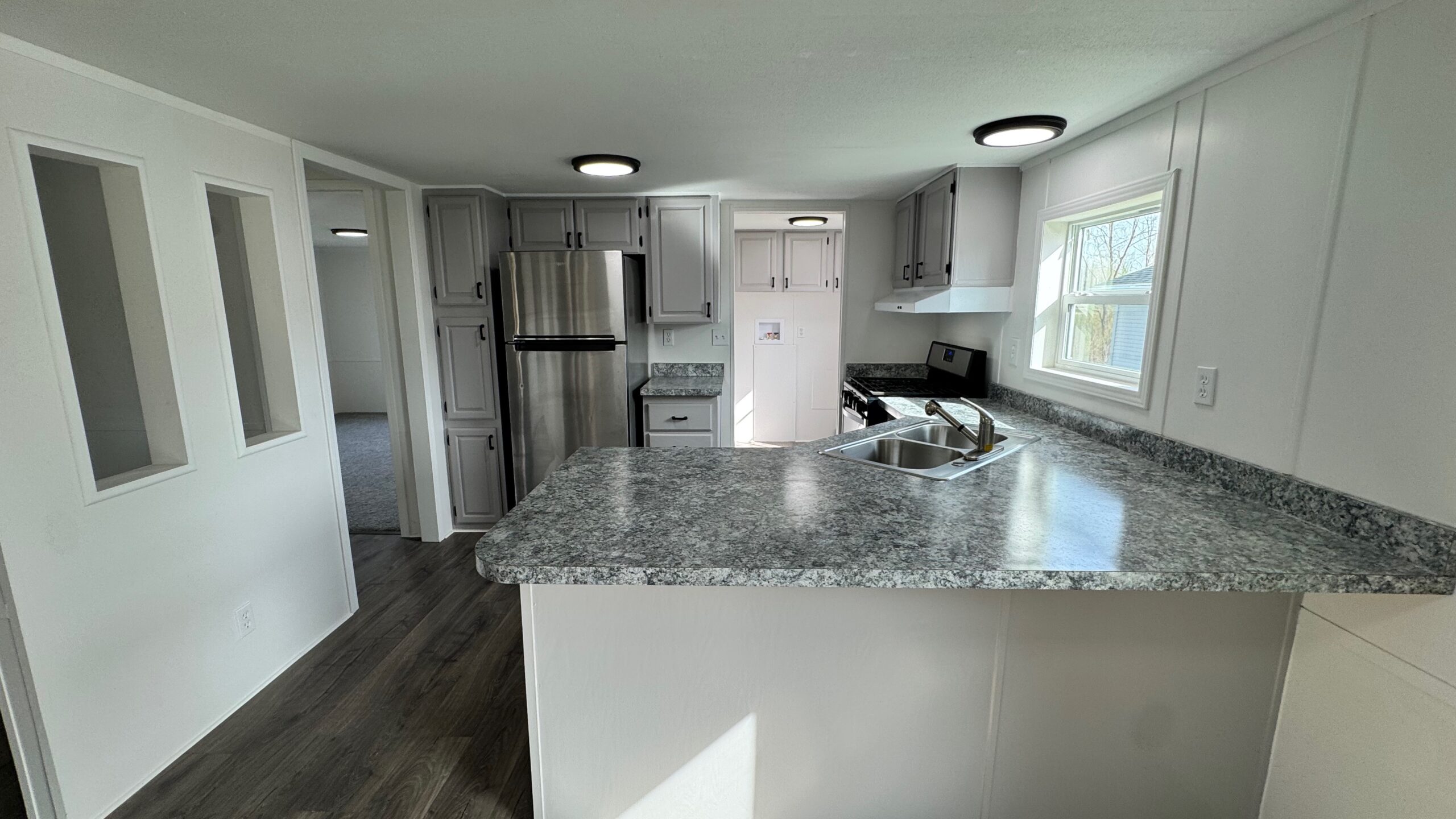 Don’t miss this opportunity to own a fully updated 1987 Carrollton manufactured home located on a desirable perimeter site in the quiet, friendly community of Woods & Fields East. This home has been thoughtfully renovated throughout and offers comfort, style, and functionality in a peaceful setting. Step inside to discover brand-new flooring throughout the home, complemented by fresh, modern paint in every room. The spacious kitchen has been tastefully updated with new countertops and new appliances, making it a perfect space for everyday living or entertaining.