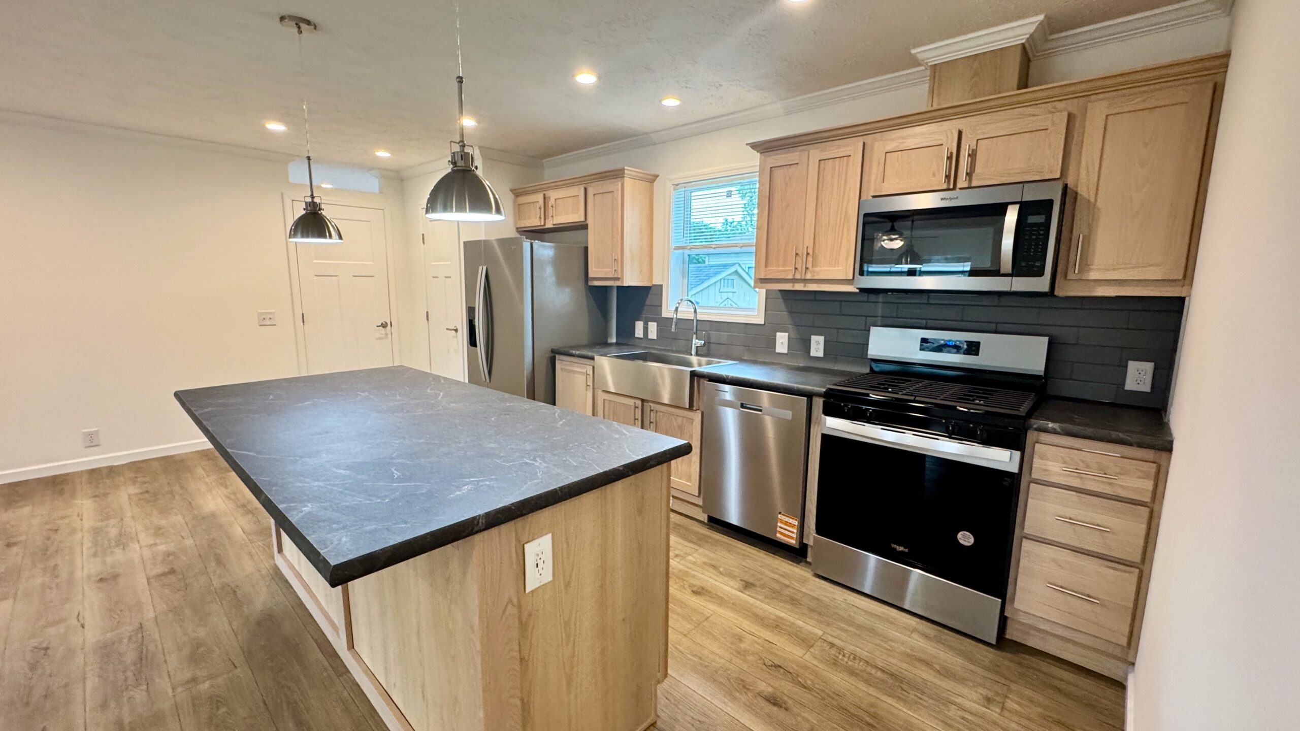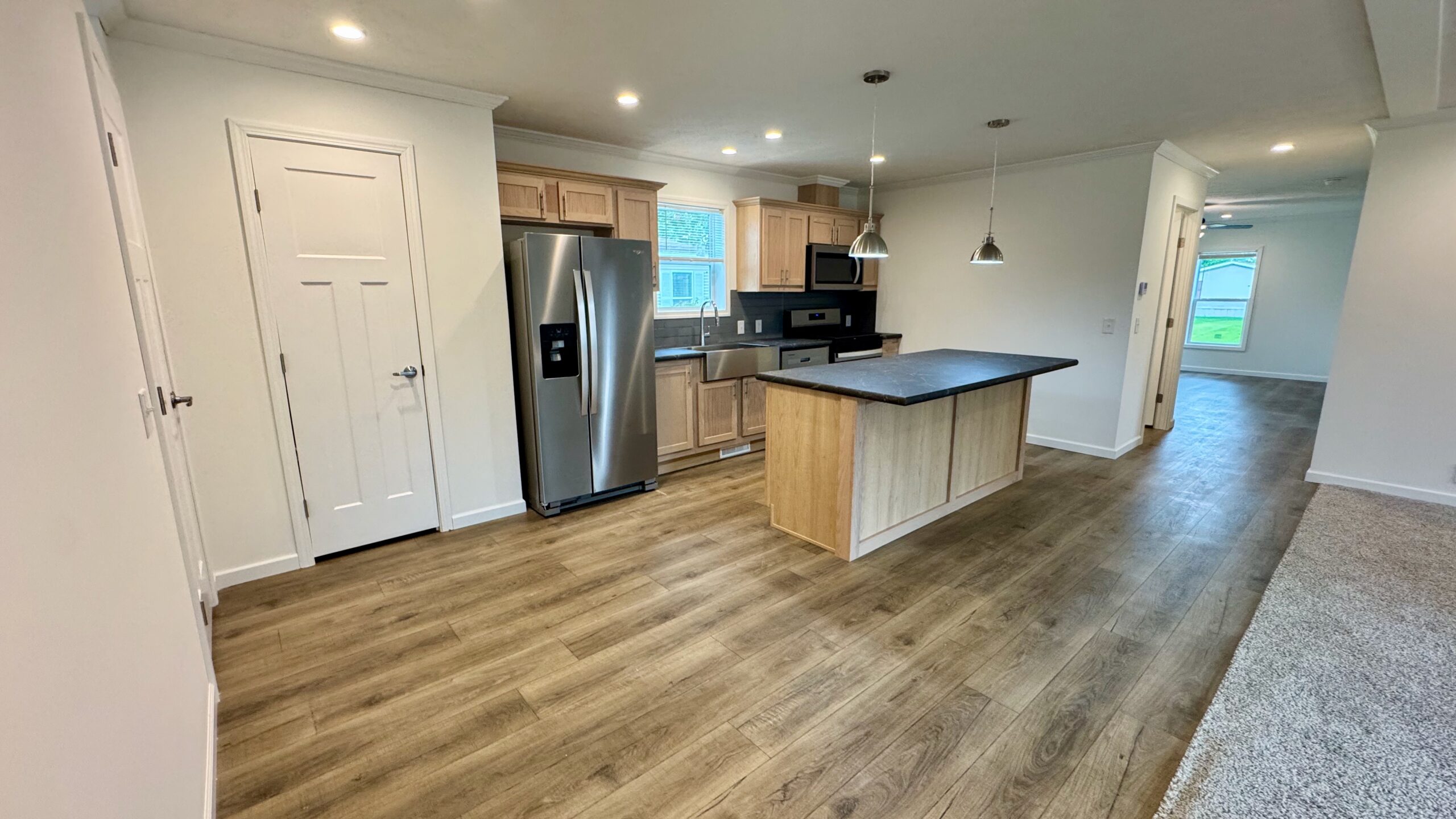 At the heart of the home is a truly standout kitchen featuring stainless steel appliances, a sleek range hood, a walk-in pantry, and a massive island perfect for cooking, serving, or connecting over coffee. Whether you’re entertaining or meal-prepping, this kitchen is ready to impress.
