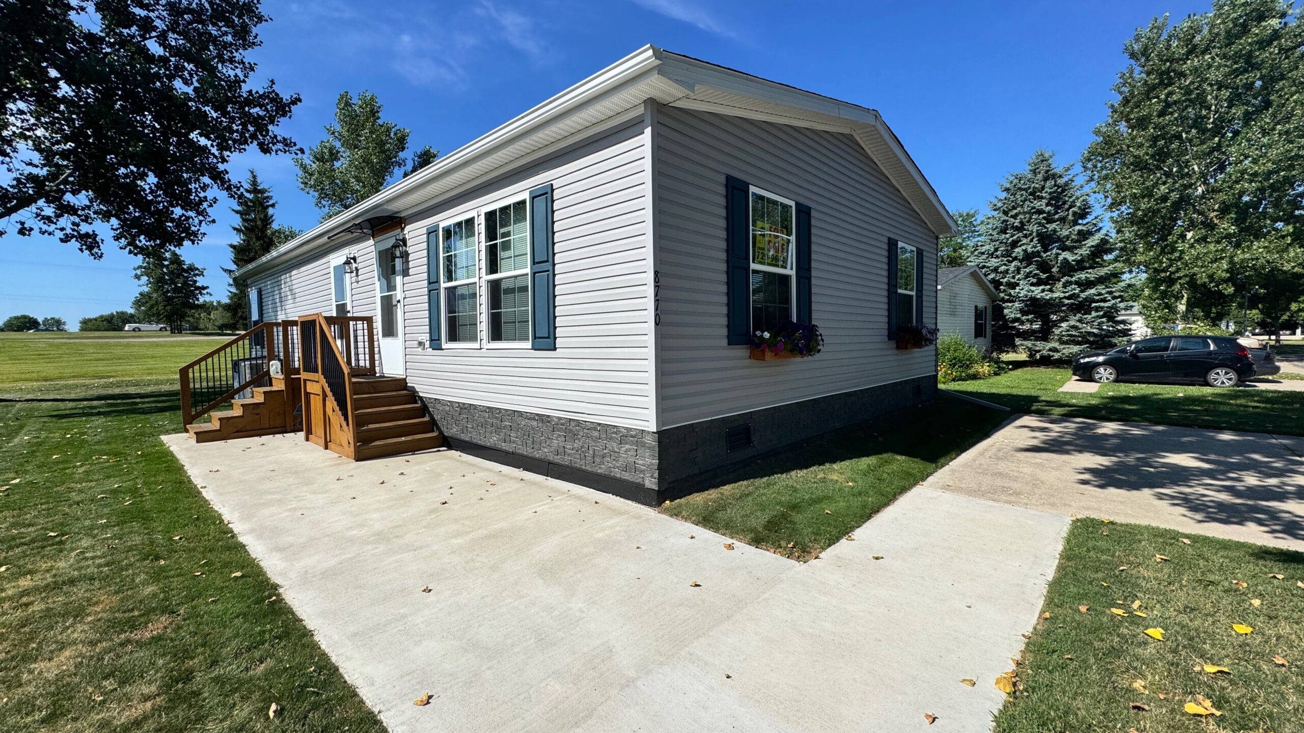 Enter the community via the M-21 entrance. Turn right onto Crestline Lane. Site 23 will be on your right hand side. Look for the numbers 8770 on the home.